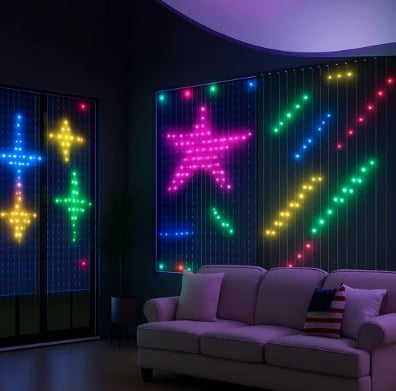 Rozświetl swoje wnętrze feerią barw i zanurz się w wyjątkowym zimowym klimacie dzięki SantaLight™ – inteligentnej kurtynie świetlnej, która łączy nowoczesną technologię, kreatywność i świąteczne emocje. Idealna do pokoju, salonu, witryny sklepowej czy na taras – w kilka chwil zamienia zwykłą przestrzeń w magiczną, bożonarodzeniową scenę. SantaLight™ to nie zwykłe lampki – to Twoje własne świetlne płótno!